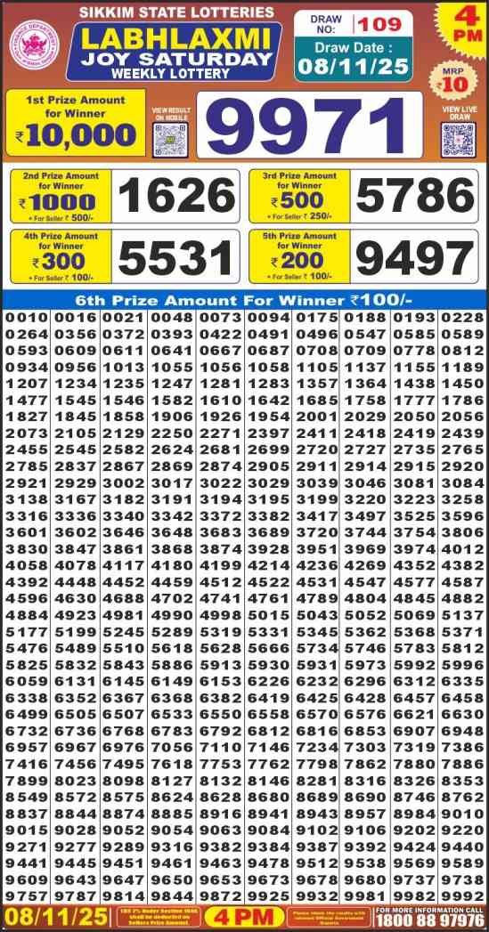 | Sikkim Labh laxmi Joy Saturday Lottery Result Today Live 8.11.2025 | |