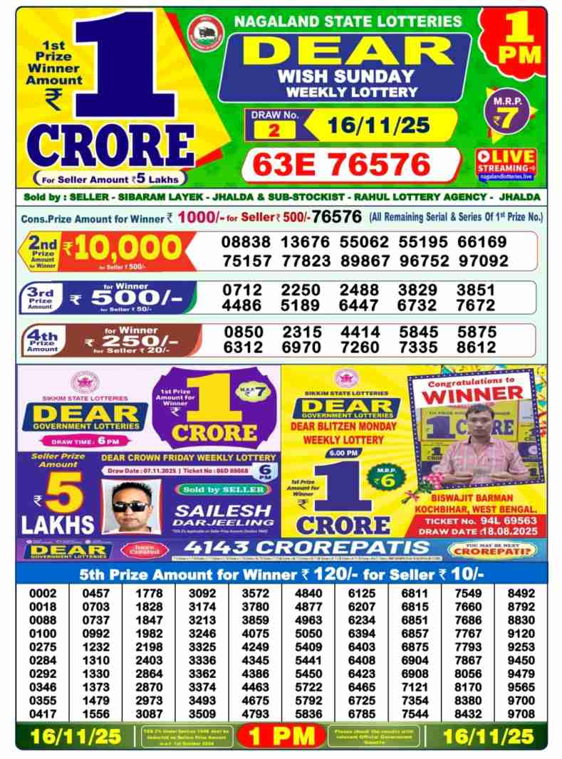 - Nagaland State Lottery Sambad Result 18.11.2025