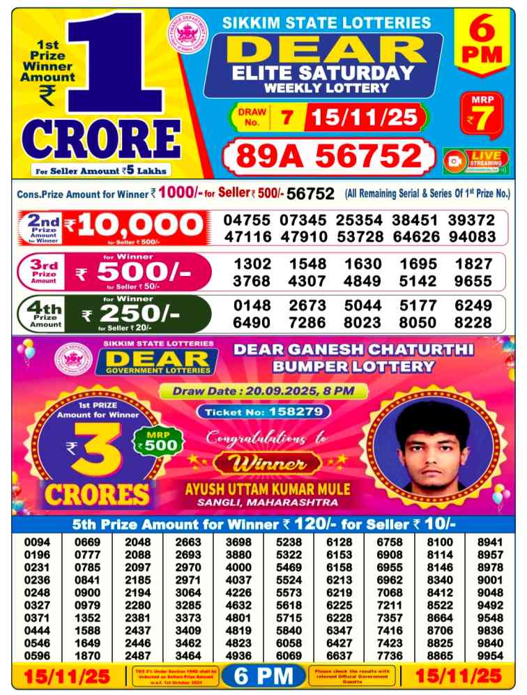As per the official information provided by the Nagaland State Lotteries, 18.11.2025 Results the winner of today’s Dear First Winner award will receive INR 1 Crore from a ticket worth INR 6. You can check your result from the lotterysambad 18 11 25 link given below…