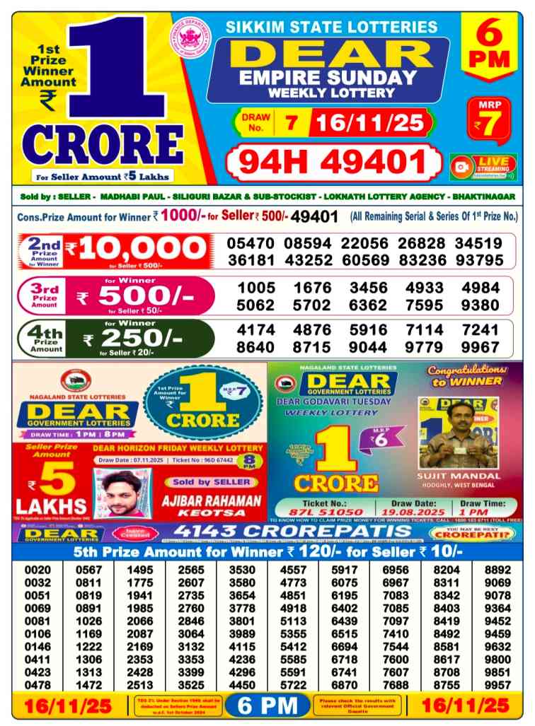| Nagaland Lottery Sambad Today 18.11.2025 Result Live Draw | |