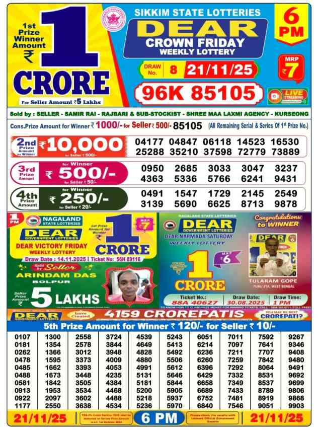 Lottery Sambad Result Today 21 November 2025