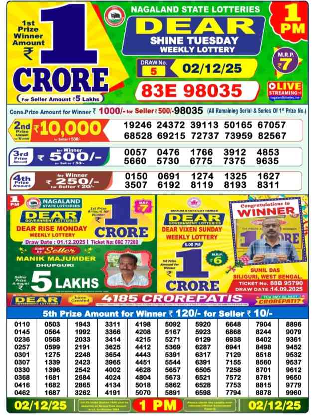 - Nagaland State Lottery 1PM Result