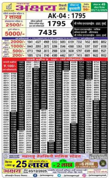 Maharashtra State Lottery 3.12.2025 Today Result is Weekly lottery draw whose Maharashtra lottery result is published a day. Mainly Maharashtra State Lottery is 4:15 pm Maharashtra State Lottery but being combined with lottery sambad, Maharashtra State Lottery will release the results of 04:15pm is published.