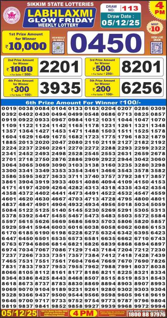 Sikkim State Lottery declares many bumper results. Labh laxmi Friday Weekly Lottery Result 2025 is Sikkim State Lottery at 04:00 PM whose result gets published on the page around 04:12 PM. Sikkim State Lottery Result ,5.12.2025 Labh laxmi Glow Result, Labh laxmi Friday Result Today Live 4PM, Sikkim Labh laxmi Weekly Result 4PM, Sikkim State Labh laxmi Glow Friday Result, Sikkim State lottery result 4PM, Labh laxmi Friday Weekly Result, Labh laxmi Glow result 4pm, Sikkim lottery result today 4PM, Labh laxmi Friday Lottery 4 PM result 5.12.2025, Sikkim Labh laxmi Friday Weekly Lottery Result, Labh laxmi Friday Live Draw.