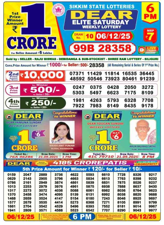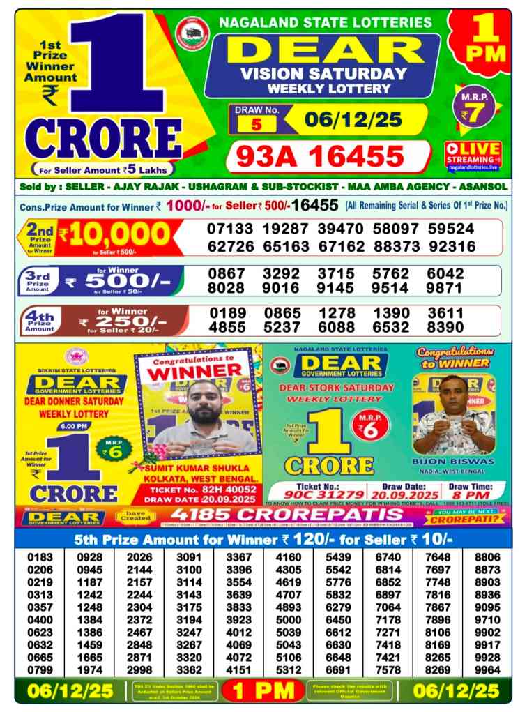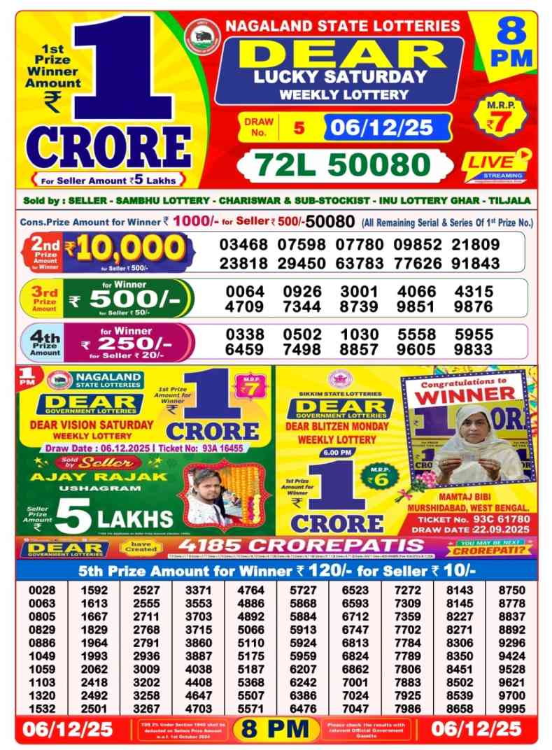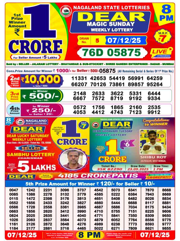 Nagaland State Lotteries Today Live draw Lottery Sambad Lottery Result 6pm. Dear Lottery Result will be presented today at 6pm on Lottery Sambad. Which is combined through West Bengal State Lottery. Lottery Sambad 7.12.2025 Lottery Result, Lottery Sambad 7.12.2025 Eveving Result 6pm, Dear Evening Lottery Sambad Result 7.12.2025. Dear Lottery Result 7.12.2025, Nagaland State Lottery Sambad Result Today 6pm, Today Live Lottery Sambad 7.12.2025, Lottery Sambad Live Today Result, Dear Sikkim State Lottery Evening Result, Sikkim Lottery Sambad Result 7.12.2025, Sikkim State Lottery 6pm Result Today Live.