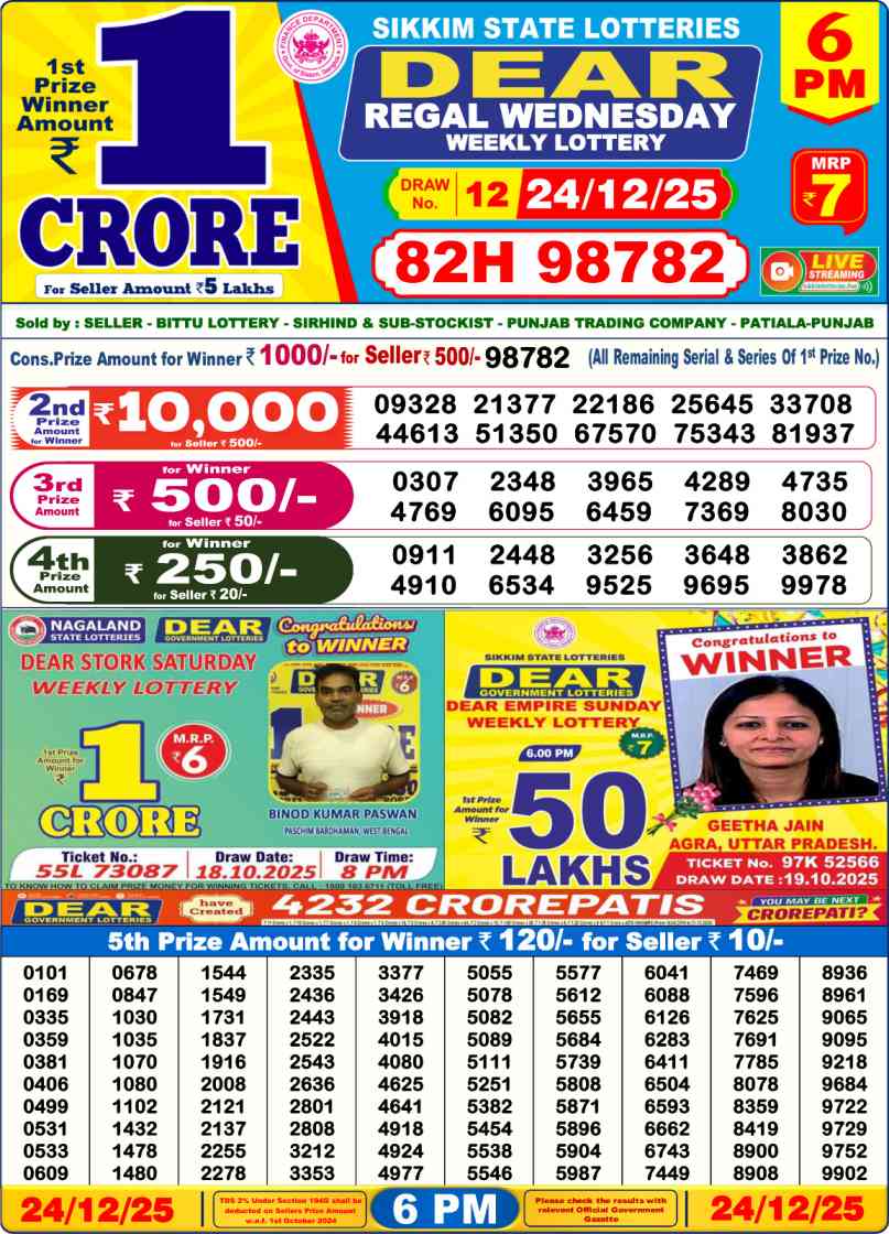 - Nagaland State Lottery Sambad Result 26.12.2025