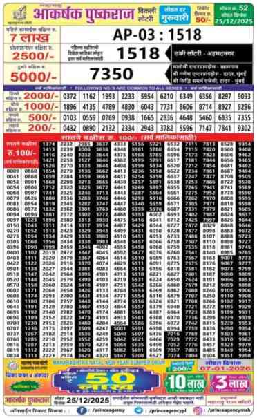 Maharashtra State Lottery declares many bumper results. Maharashtra Akarshak Pushkraj 2025 Result is Maharashtra State Lottery at 04:15 PM whose result gets published on the page around 05:00 PM. Maharashtra State Akarshak Pushkraj Weekly Lottery Result 25.12.2025 Live Draw Winner List at 4.15 PM, Maharashtra Dear Akarshak Pushkraj Lottery 2025, Today Maharashtra Akarshak Pushkraj Lottery, Maharashtra State Lottery Akarshak Pushkraj Lottery Result Today Live, Maharashtra Akarshak Pushkraj Draw 2025, Maharashtra Lottery Akarshak Pushkraj Result 2025, Maharashtra Lottery 2025, Maharashtra State Lottery Result 2025, Maharashtra Akarshak Pushkraj Lottery 25.12.2025 Result.