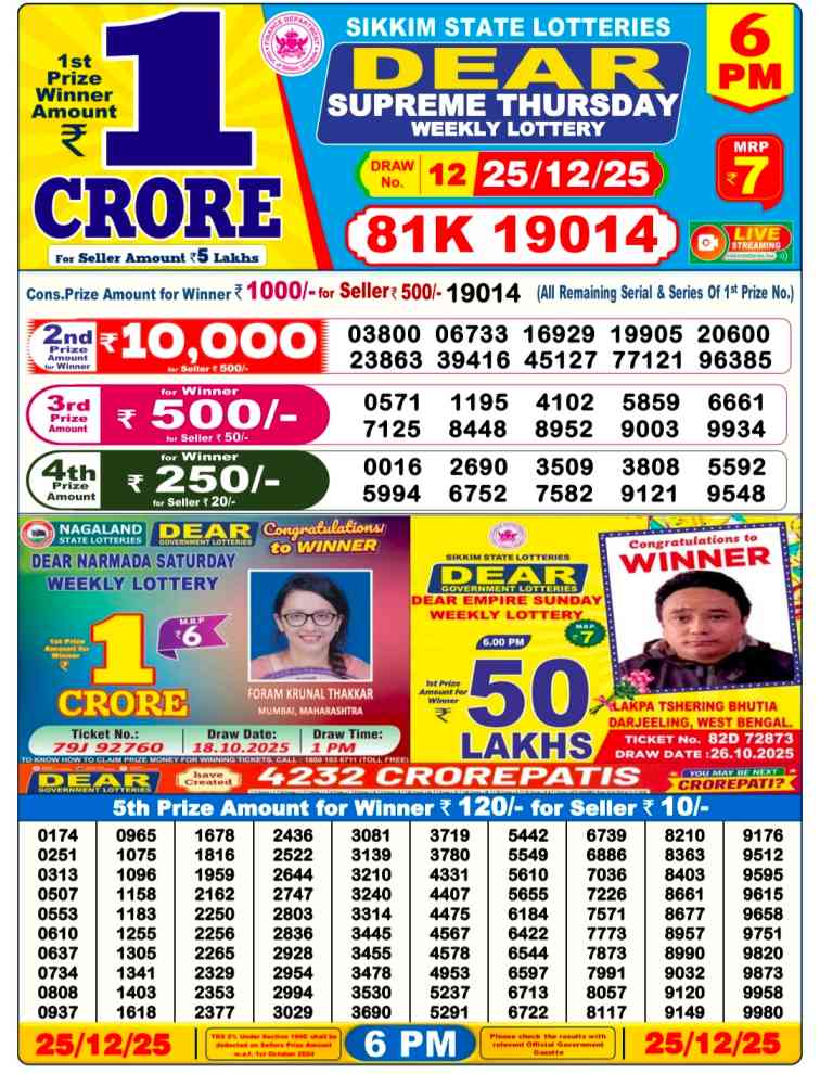 Lottery Sambad Result Today 25 December 2025