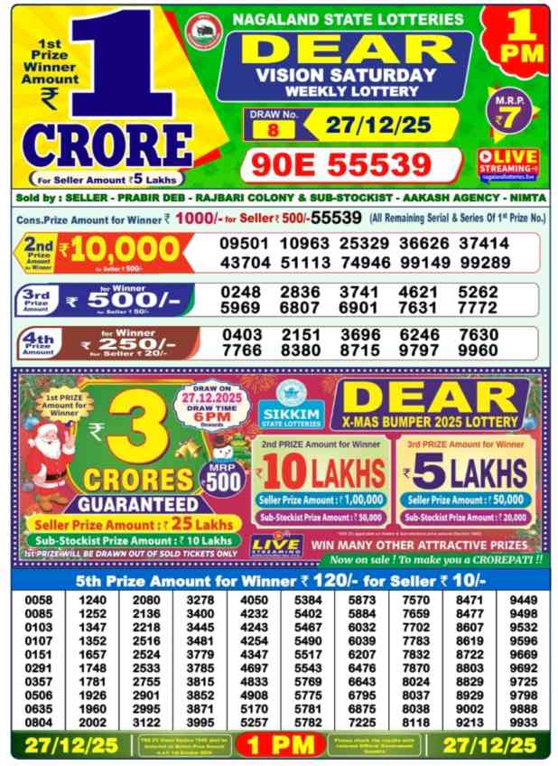 • Nagaland State Lottery Sambad Result 30.12.2025