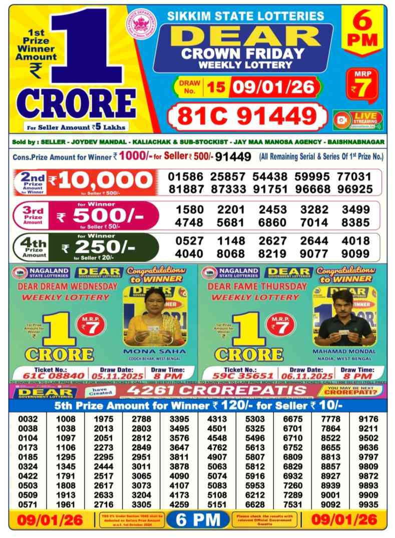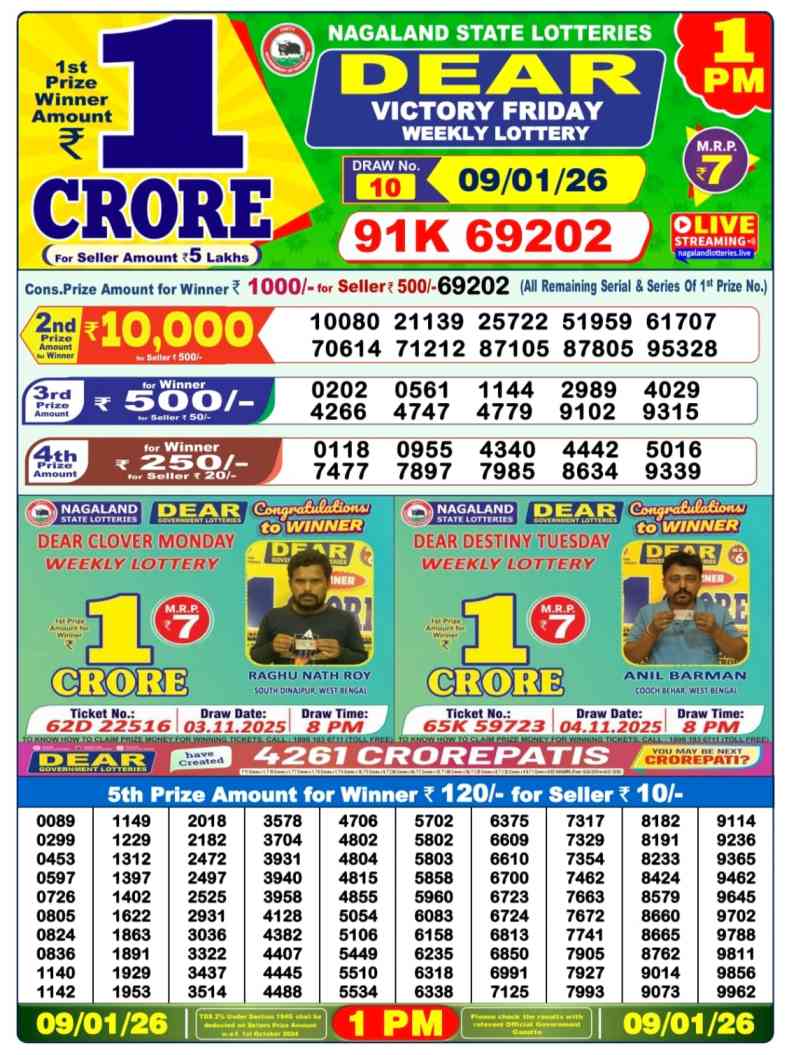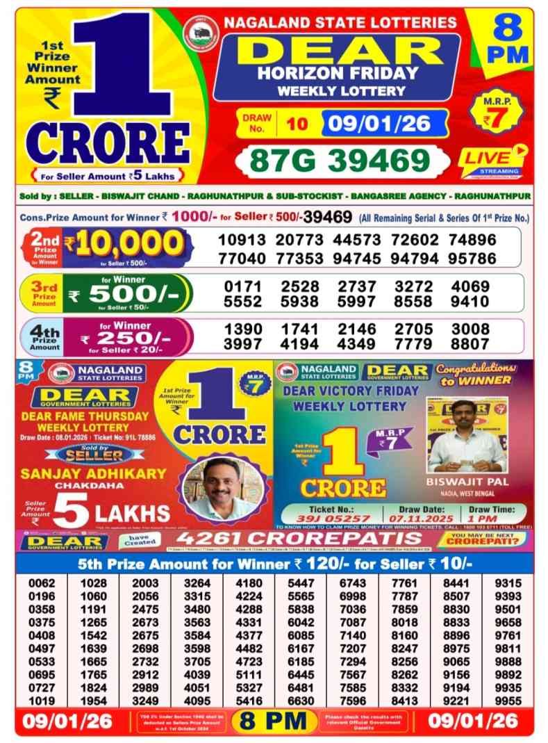 - Nagaland State Lottery Sambad Result 9.1.2026