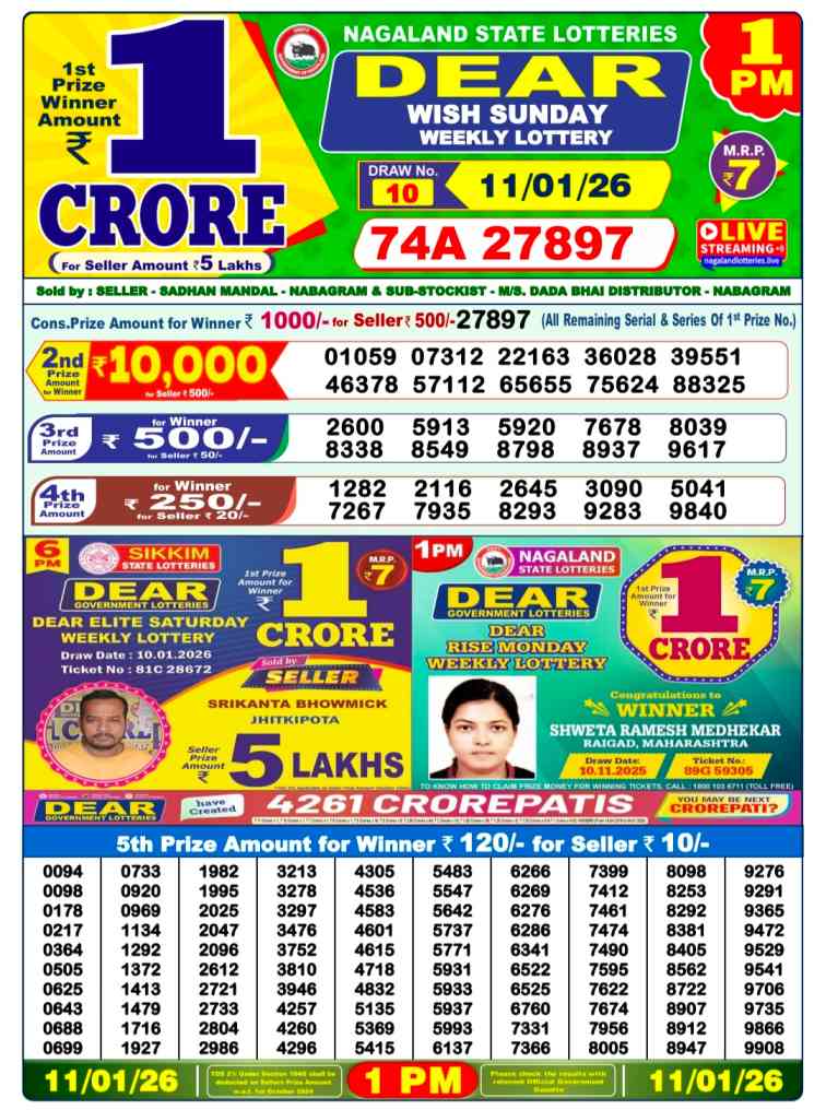- Nagaland State Lottery Result Today 11.1.2026