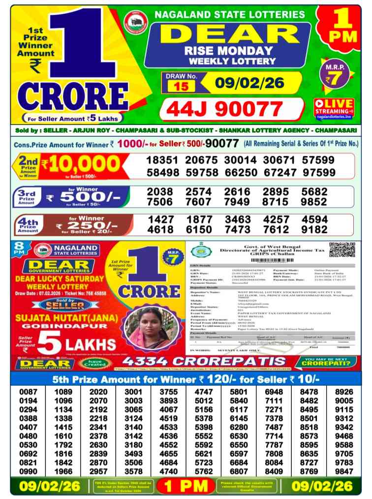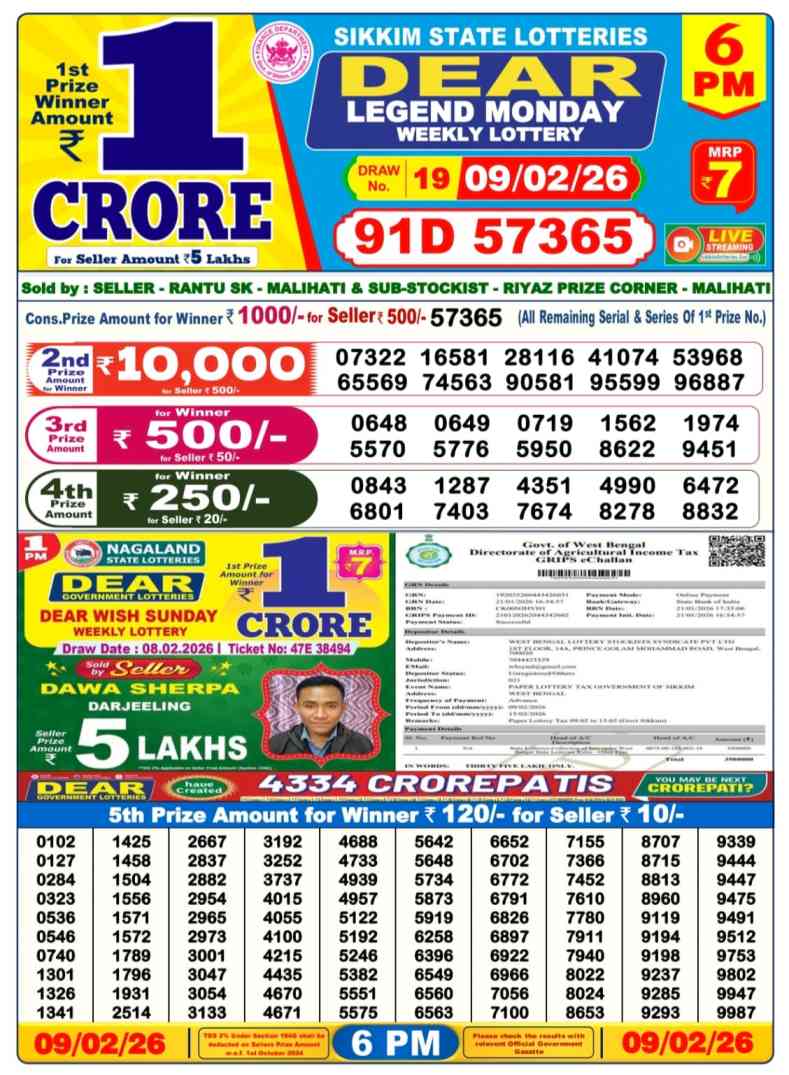 Nagaland State Lotteries Today Live draw Lottery Sambad Lottery Result 6pm. Dear Lottery Result will be presented today at 6pm on Lottery Sambad. Which is combined through West Bengal State Lottery. Lottery Sambad 9.2.2026 Lottery Result, Lottery Sambad 9.2.2026 Eveving Result 6pm, Dear Evening Lottery Sambad Result 9.2.2026. Dear Lottery Result 9.2.2026, Nagaland State Lottery Sambad Result Today 6pm, Today Live Lottery Sambad 9.2.2026, Lottery Sambad Live Today Result, Dear Sikkim State Lottery Evening Result, Sikkim Lottery Sambad Result 9.2.2026, Sikkim State Lottery 6pm Result Today Live.