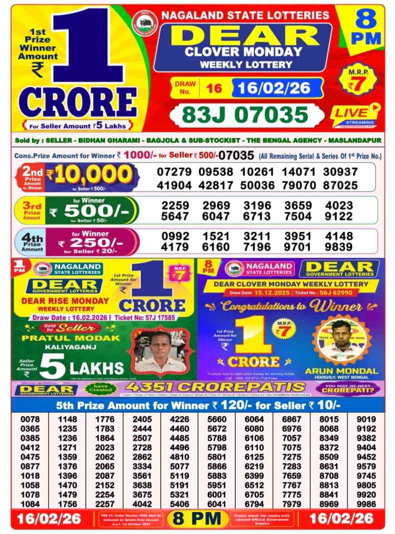 • Lottery Sambad Result Today 16 February 2026