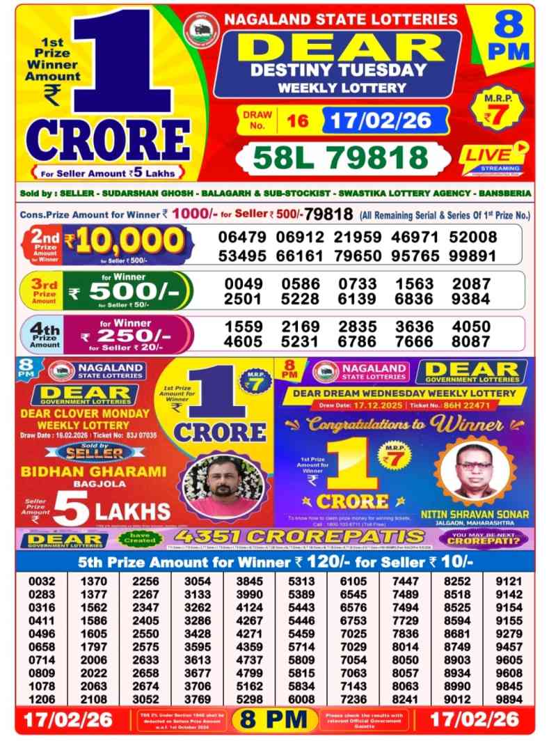 Nagaland Dear Lottery Sambad Night Result, Nagaland State Lottery Sambad 8pm Result, Nagaland Lottery Night Result, Nagaland State Lottery Today Live Result, Dear Daily Lottery Result, Dear Lottery Sambad 8pm 1pm 6pm, Nagaland State Lottery Sambad 18.2.2026 Result 1pm 6pm 8pm, Nagaland 18.2.2026 Dear Lottery Sambad Result Today Live, Nagaland Lotteries Result, Nagaland State Lottery Today Winner List here Dear Lottery Sambad 1pm 6pm 8pm, Nagaland State Lottery Today’s Result, Nagaland State Lottery Result Dear Morning 1pm Evening 6pm Night 8pm. Nagaland State Lottery Result Dear Night Result 8pm Today Live on Lottery Sambad 18.2.2026. Dear Lottery Result 18.2.2026 Today 1pm 6pm 8pm, Nagaland State Lottery Sambad Today Live Chart, Nagaland Lottery Sambad 18.2.2026 Today 8PM Result, Nagaland Lottery Live 8pm Result, Dear Lottery Live Result Today 1pm 8pm 6pm.