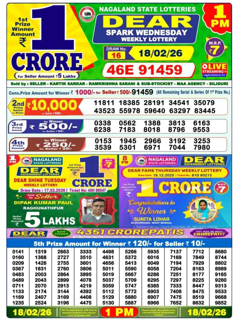 - Nagaland State Lottery Sambad Result 18.2.2026