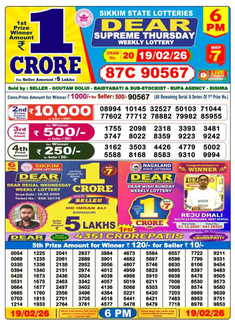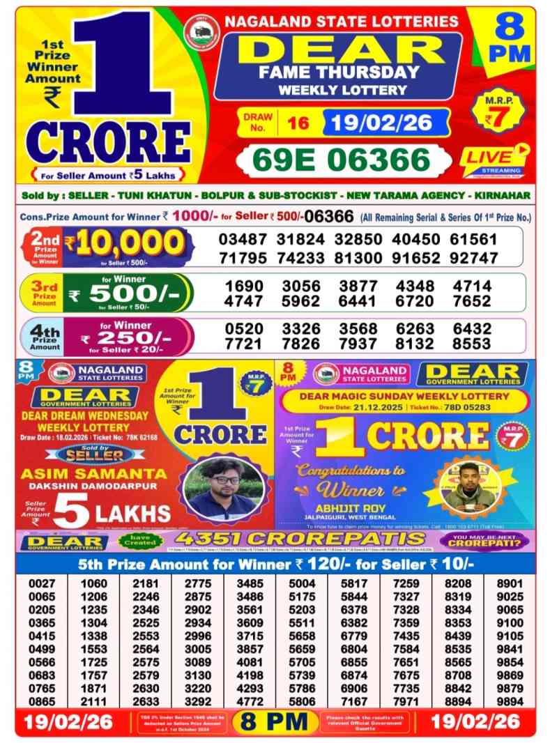 • Nagaland State Lottery Result Live 20.2.2026