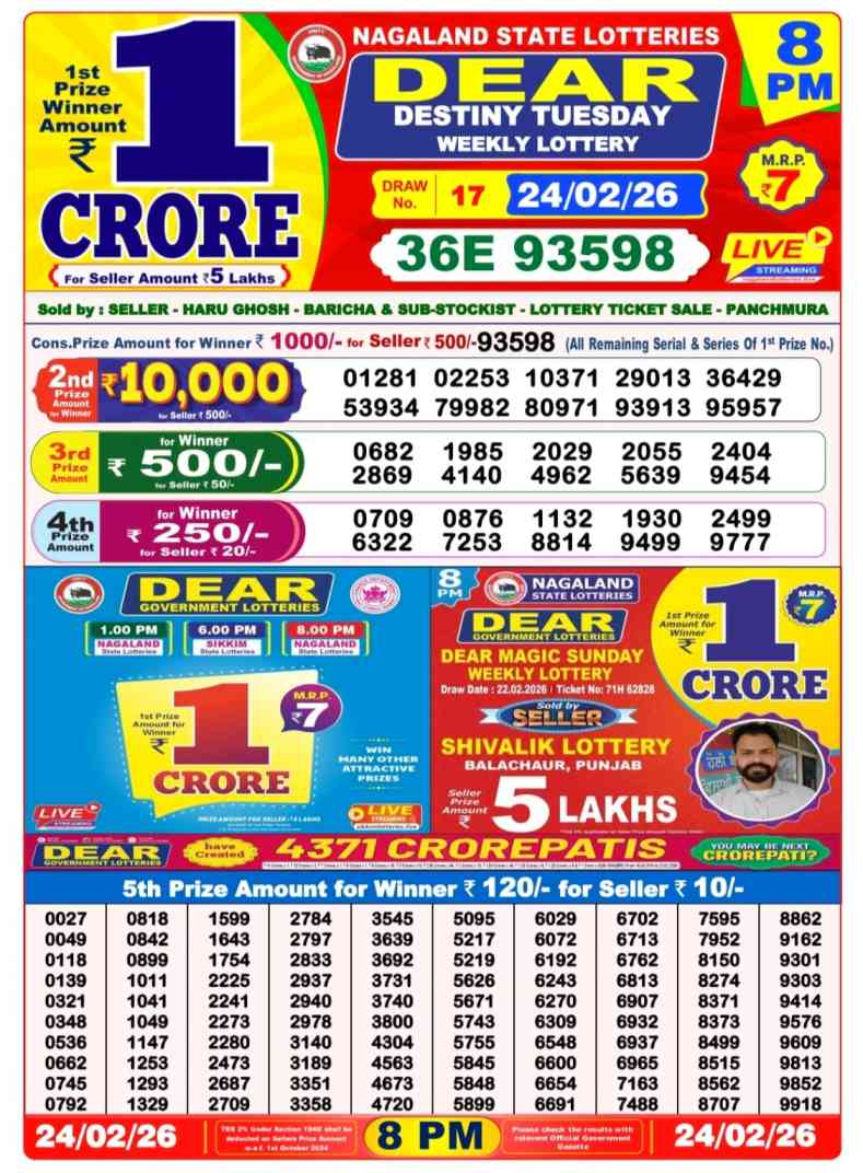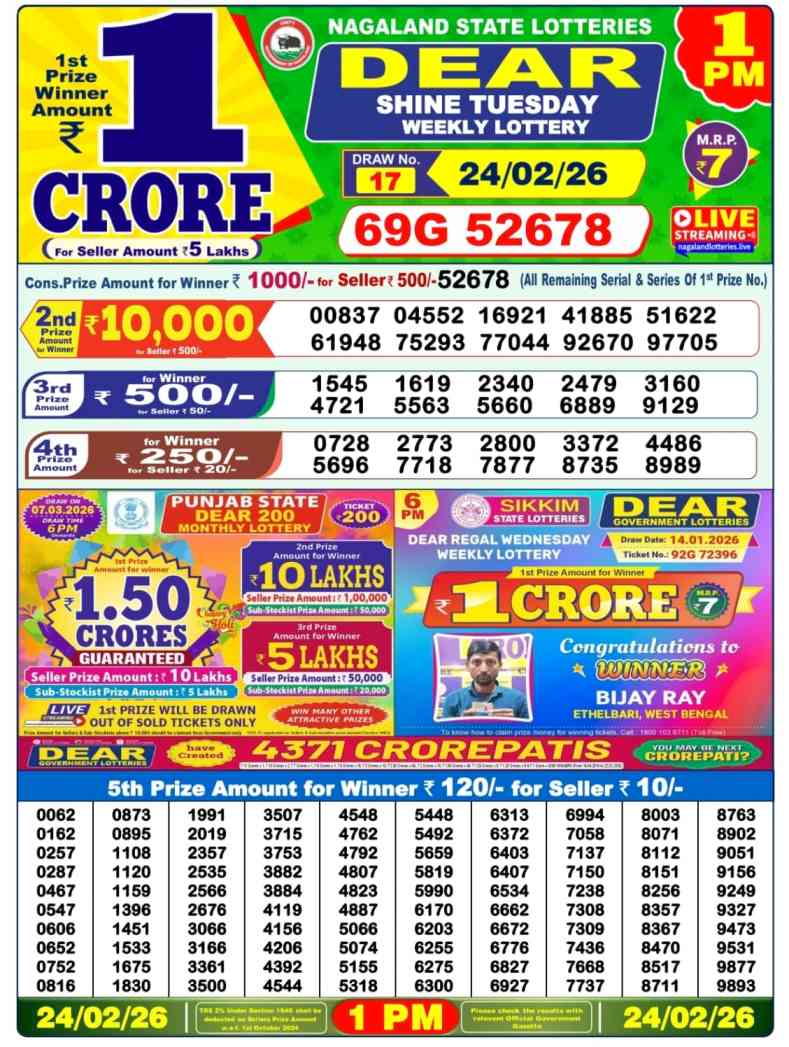 - Nagaland State Lottery Sambad Result 24.2.2026