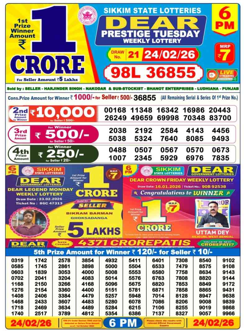 Lottery Sambad 24.2.2026 Result Today Live:-