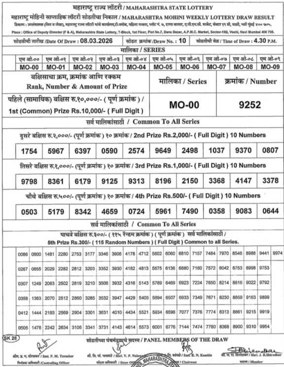 MAHARASHTRA MOHINI LOTTERY RESULT DRAW DATE- 8.3.2026