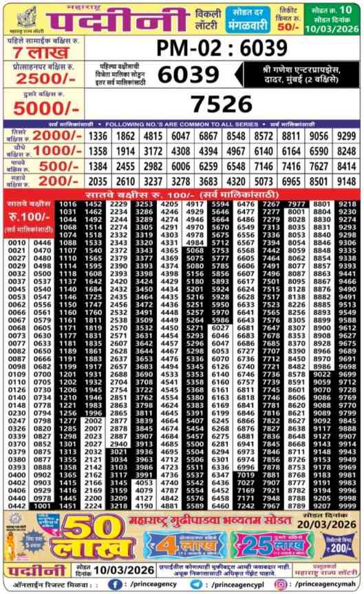MAHARASHTRA PADMINI LOTTERY 2026 DRAW DATE- 10.3.2026