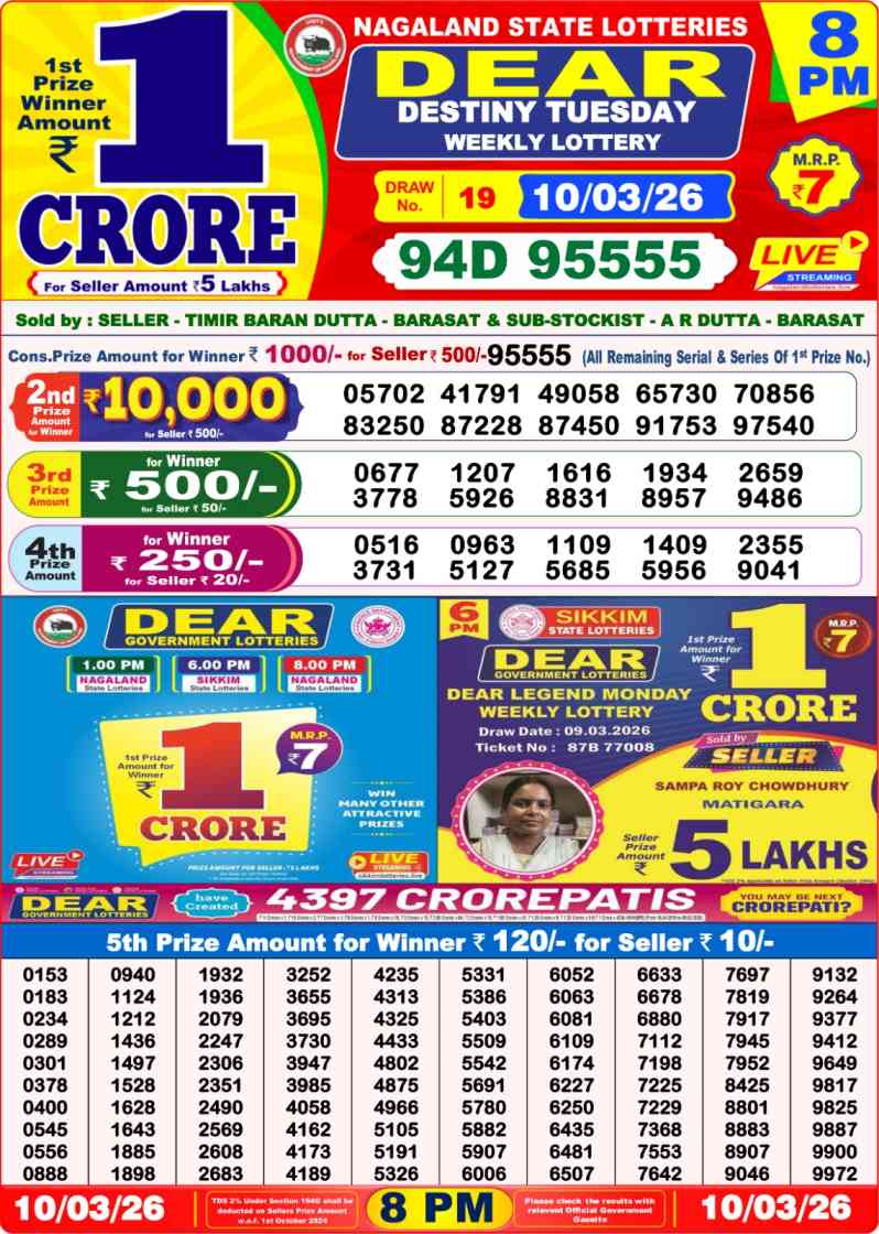 • Lottery Sambad Result Today 10 March 2026
