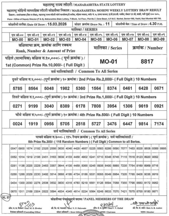 MAHARASHTRA MOHINI LOTTERY RESULT DRAW DATE- 15.3.2026