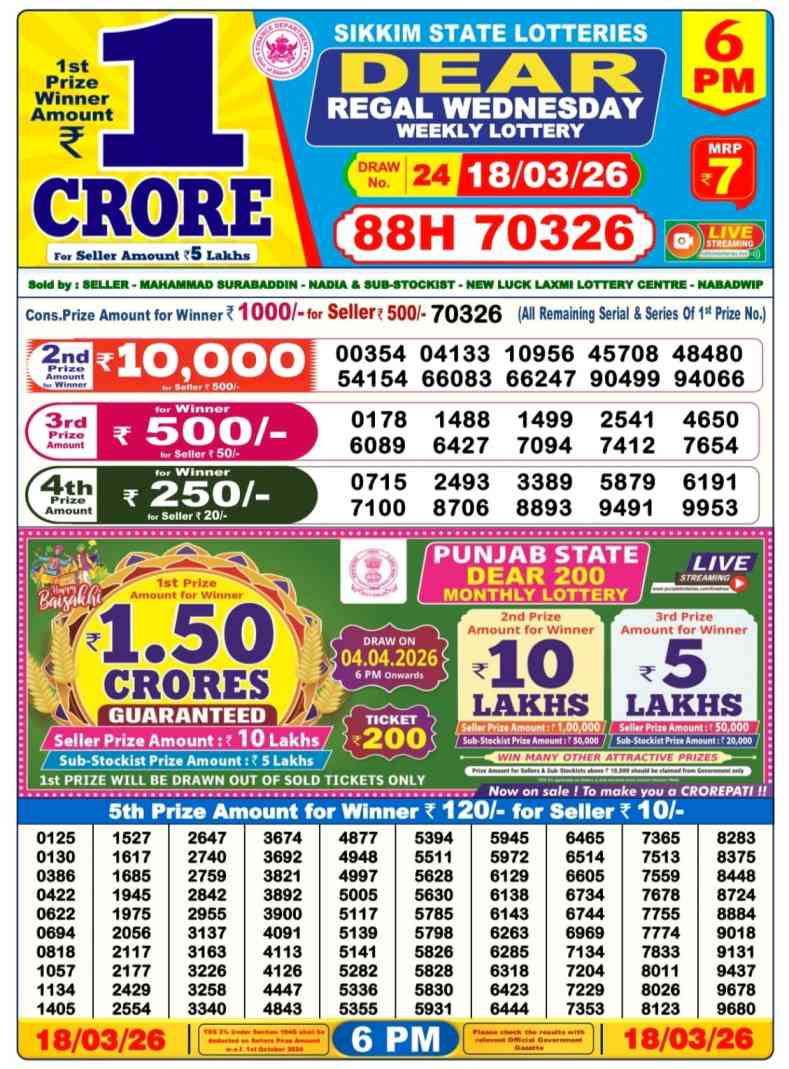 Nagaland State Lotteries Today Live draw Lottery Sambad Lottery Result 6pm. Dear Lottery Result will be presented today at 6pm on Lottery Sambad. Which is combined through West Bengal State Lottery. Lottery Sambad 19.3.2026 Lottery Result, Lottery Sambad 19.3.2026 Eveving Result 6pm, Dear Evening Lottery Sambad Result 19.3.2026. Dear Lottery Result 19.3.2026, Nagaland State Lottery Sambad Result Today 6pm, Today Live Lottery Sambad 19.3.2026, Lottery Sambad Live Today Result, Dear Sikkim State Lottery Evening Result, Sikkim Lottery Sambad Result 19.3.2026, Sikkim State Lottery 6pm Result Today Live.