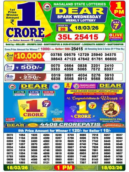 Nagaland Dear Lottery Sambad Night Result, Nagaland State Lottery Sambad 8pm Result, Nagaland Lottery Night Result, Nagaland State Lottery Today Live Result, Dear Daily Lottery Result, Dear Lottery Sambad 8pm 1pm 6pm, Nagaland State Lottery Sambad 18.3.2026 Result 1pm 6pm 8pm, Nagaland 18.3.2026 Dear Lottery Sambad Result Today Live, Nagaland Lotteries Result, Nagaland State Lottery Today Winner List here Dear Lottery Sambad 1pm 6pm 8pm, Nagaland State Lottery Today’s Result, Nagaland State Lottery Result Dear Morning 1pm Evening 6pm Night 8pm. Nagaland State Lottery Result Dear Night Result 8pm Today Live on Lottery Sambad 18.3.2026. Dear Lottery Result 18.3.2026 Today 1pm 6pm 8pm, Nagaland State Lottery Sambad Today Live Chart, Nagaland Lottery Sambad 18.3.2026 Today 8PM Result, Nagaland Lottery Live 8pm Result, Dear Lottery Live Result Today 1pm 8pm 6pm.