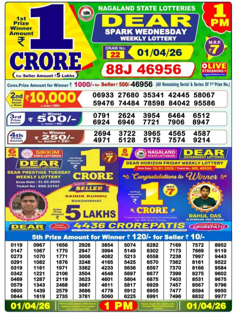As the Lottery Sambad Morning 1pm Result is weekly, today Dear Lottery Sambad Morning Result will be released at 1pm which is known as Nagaland State Lotteries Dear Morning Weekly Lottery Result. Lottery Sambad 2.4.2026 Result, Nagaland Lottery Sambad 2.4.2026 Today Result, Dear Lottery Result, Dear Lottery Result 2.4.2026,  Dear Lottery Sambad Morning Result 2.4.2026, Dear Morning Result Today 1pm, Lottery Sambad Today Live 1pm, Nagaland State Lottery Sambad Result Today 1 PM, 6 PM, 8 PM  Nagaland Lottery Sambad Result 2.4.2026, Nagaland Lottery 2.4.2026 Result, Nagaland State Lottery Morning 2.4.2026 Result, Nagaland Lottery Result 1 pm, Nagaland State Lottery Result Today 2.4.2026, Nagaland State Lottery Result Today, Dear Day Lottery Sambad Result, Lottery Sambad Day Result, Nagaland State Lottery 2.4.2026, Nagaland Lottery Result, Lottery Sambad Today Result.