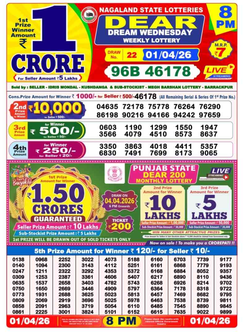 Nagaland lottery ticket is only 7 rupees but 1 crore is given as prize for winning the major. Results are also placed on this page which you can see. Nagaland lottery sambad is searched by different names, lottery sambad 8pm result, lottery sambad night result, night result 8pm, nagaland state lottery 8pm result, nagaland state lottery sambad 8pm Result, Nagaland State Lotteries, Nagaland State Lottery Result 8pm, 6pm, 1pm, Nagaland State Lottery Live, Nagaland Lotteries, Nagaland State Lottery Evening Result, Nagaland State Lottery Old Result, Lottery Sambad Old, Nagaland Lottery Sambad Night Result Live 8PM, Nagaland Lottery Sambad Result Live 6PM, Nagaland State Lottery Sambad Morning Result Live 1PM.