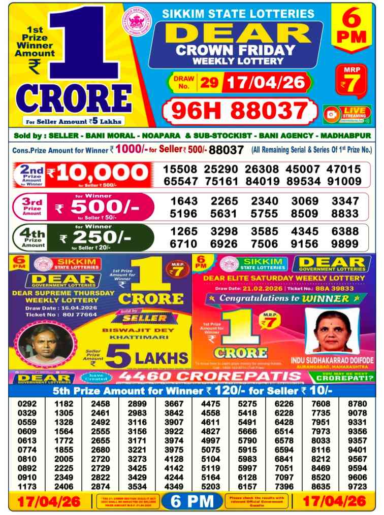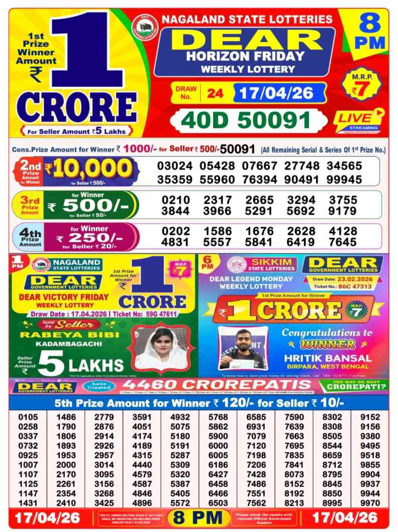 • Lottery Sambad Result Today 17 April 2026